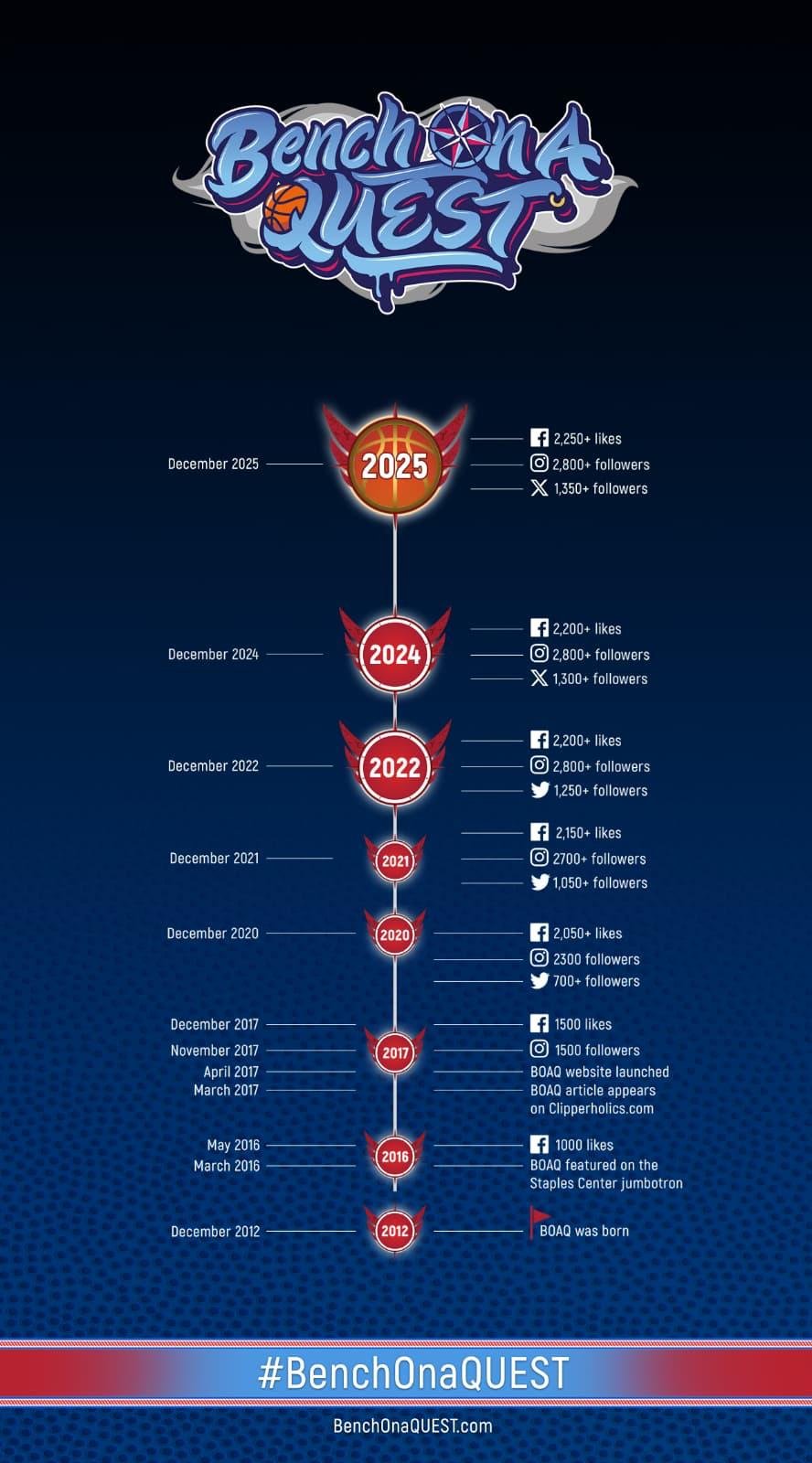 Celebrating 13 Years of Bench On a QUEST! Since 2012 the @BenchOnAQUEST Movement has been inspiring basketball fans around the world. Like, Save, and RT to keep the movement alive.